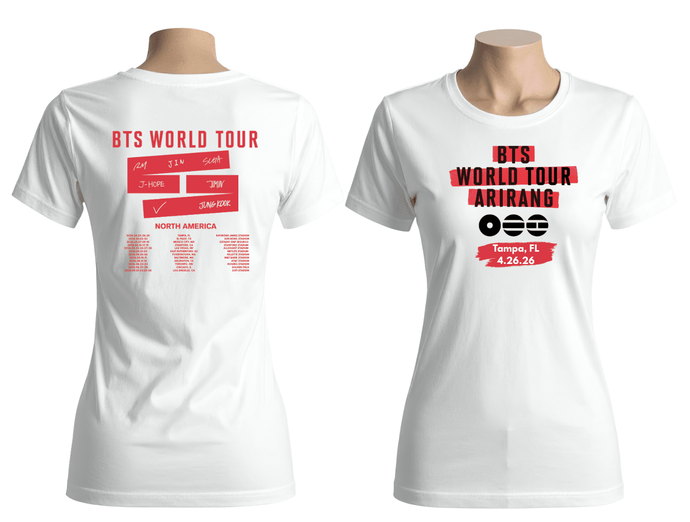 Each shirt is custom printed with care — perfect for BTS fans 💜